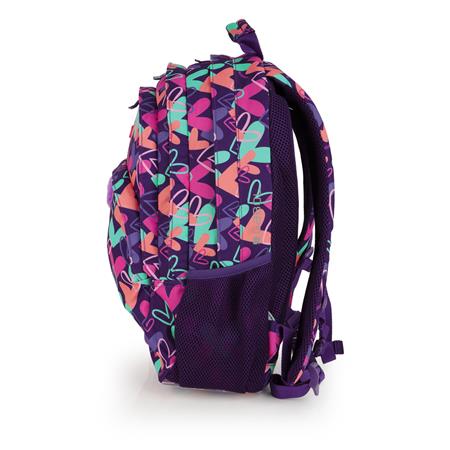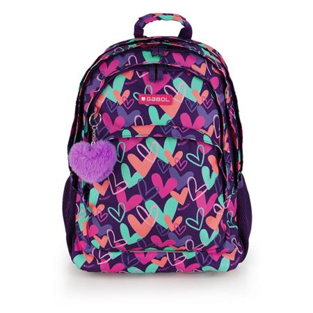 Hátizsák, iskolatáska, cipzáras, GABOL "Kokoro", lila, szívek
