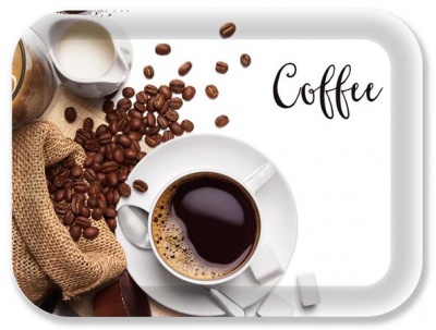 Praktikus műanyag tálca, divatos dekorral hétköznapi használatra, irodákba és otthonra is. 40°C fokos vízzel, karcmentes mosogatószerrel mosogatható.Méret: 33x24,5 cm